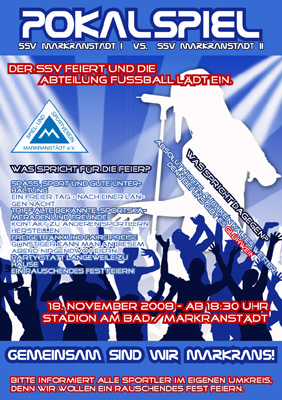 Einladung am 18.11.2008. Alle Infos zum Pokalspiel und der anschließenden Feier im Partyzelt unter http://www.ssv-markranstaedt.de Alle sind willkommen!