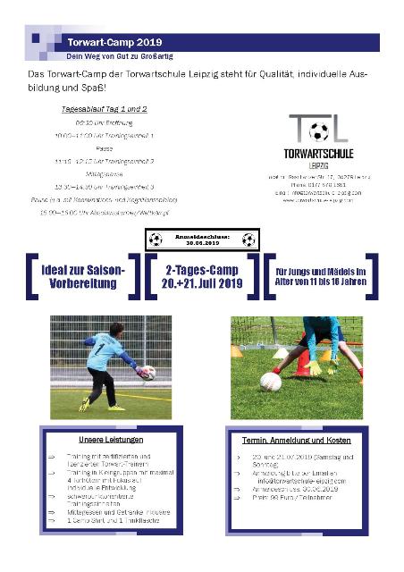 Die Torwartschule Leipzig freut sich, wenn ihr die Ausschreibung zum Torwart-Camp in Leipzig an eure TorhüterInnen Talente weitergebt.