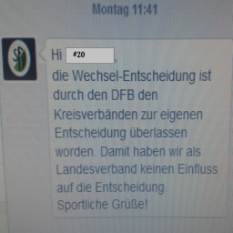 "die Wechsel-Entscheidung ist durch den DFB den Kreisverbänden zur eigenen Entscheidung überlassen worden. Damit haben wir als Landesverband keinen Einfluss auf die Entscheidung.