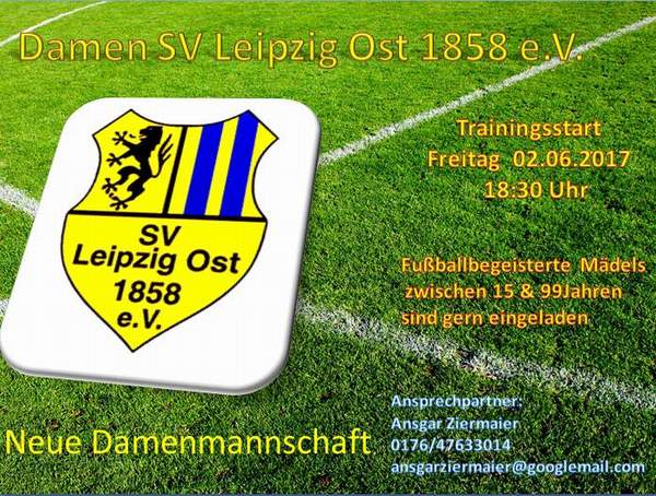 Wir, eine neu gegründete Mädchen und Damentruppe bei SV Leipzig Ost 1858 e.V. suchen Fußball begeisterte Mädels (ab 15 Jahre) oder Damen, die bereits über Fußball Erfahrung verfügen, oder gern einem neuen aktiven Hobby nachgehen möchten, um mit uns gemeinsam eine NEUE Mannschaft aufzubauen.